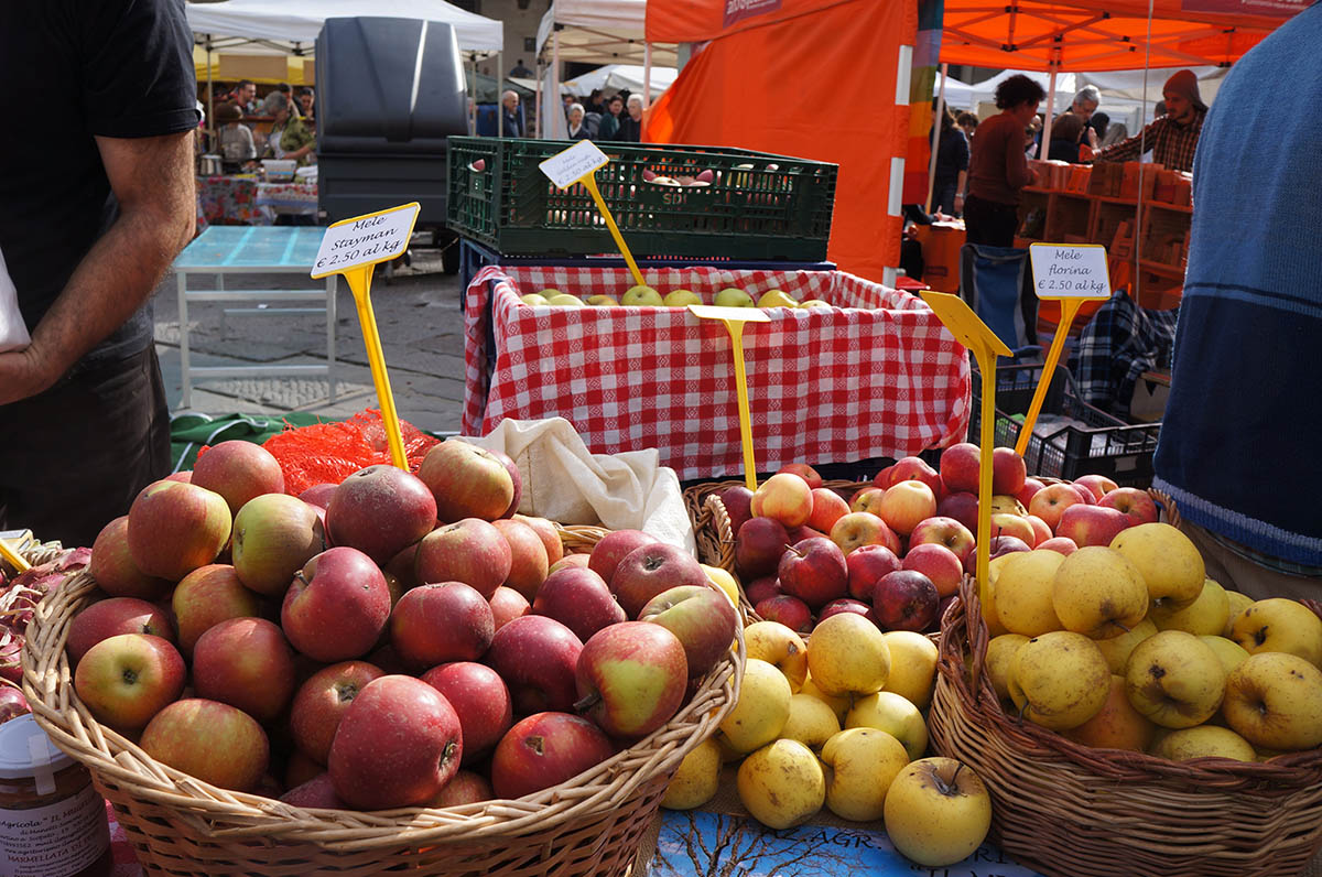 上の2つの市場に比べると小規模ですが、美しい教会のあるのんびりとした広場に八百屋、雑貨屋、花屋が店を開き、地元の人達が買い物に来る風景は、まるで映画のようです。