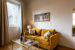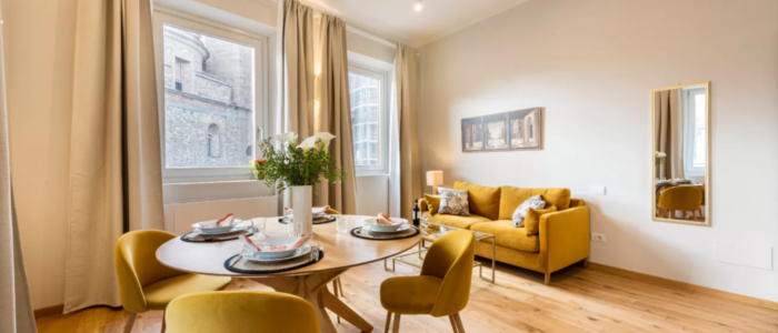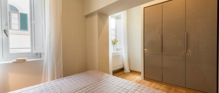 サン・ロレンツォ教会前の広場を眺める大きな窓が、リビングと寝室の両方についています。防音設備が整っていて、窓を閉めると外の音が全く聞こえません。鍵やエアコンなどは全て最新の設備を整えているので、安心してご滞在できるアパートです。