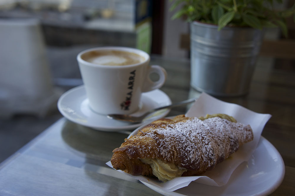 奥村さんと宿近くで待ち合わ後、まずはカフェへ行き、オーダーの仕方も教わりつつ、朝食をとりながら、フィレンツェのこと、各種お店のこと、注意点、こちらの不安や疑問に対して、いろいろ教えてくださいます。