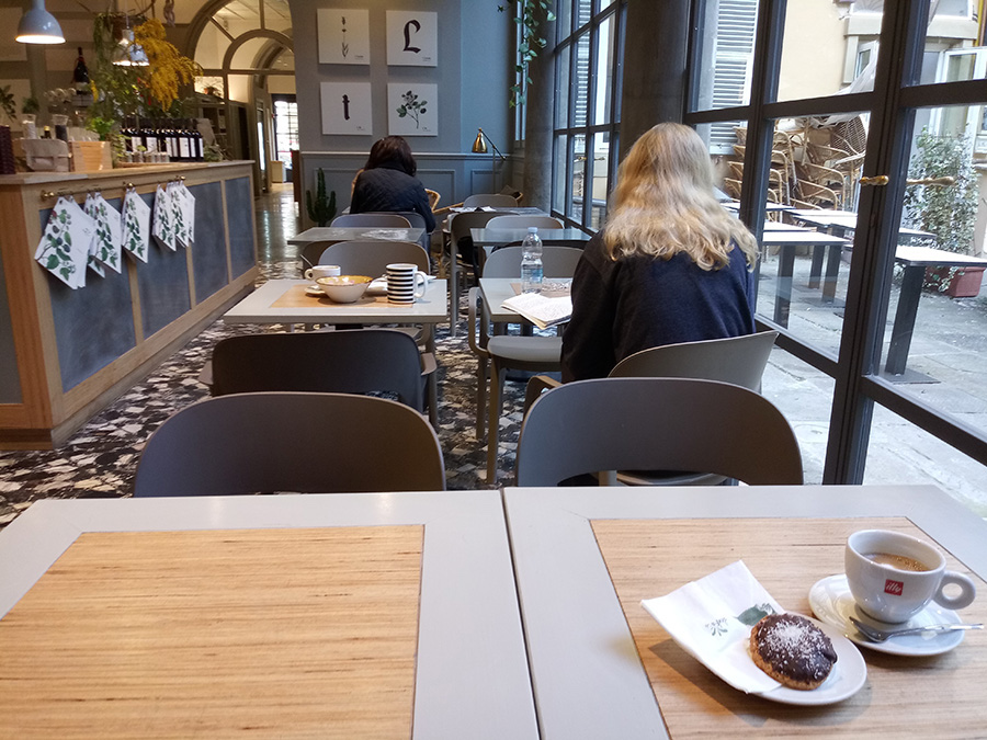 写真はサン・マルコ広場の近くで見つけた居心地の良いカフェです。ネットが通じて、朝からシリアルなどが食べられます。アパート滞在にはホテルやB&Bのように朝食はつかないけれど、こんなカフェ巡りをするのも楽しいと思います。