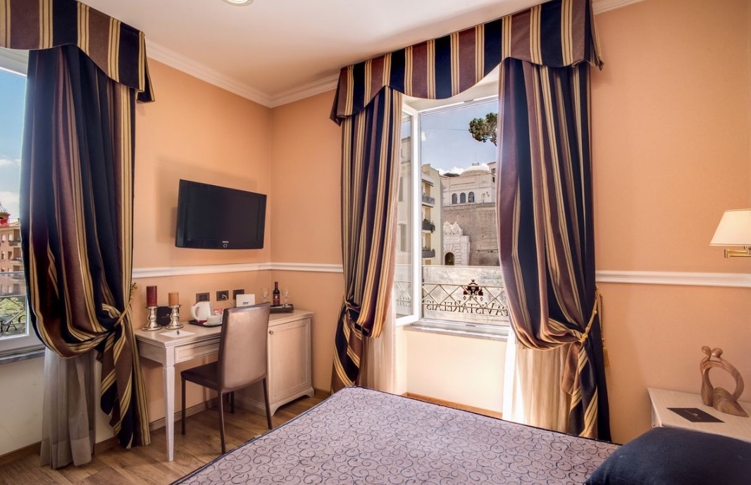このホテルの魅力は、ヴァチカン美術館の入り口の前という素晴らしいロケーションです。美術館巡りでローマに行かれる方には一番のオススメです。特にヴァチカン美術館は広いので、訪れた後、すぐにホテルに戻って一休み出来るというロケーションは、かなりポイントが高いと思います。設備も清潔度も安心出来て、落ち着いてご滞在頂ける、使いやすいプチホテルです。